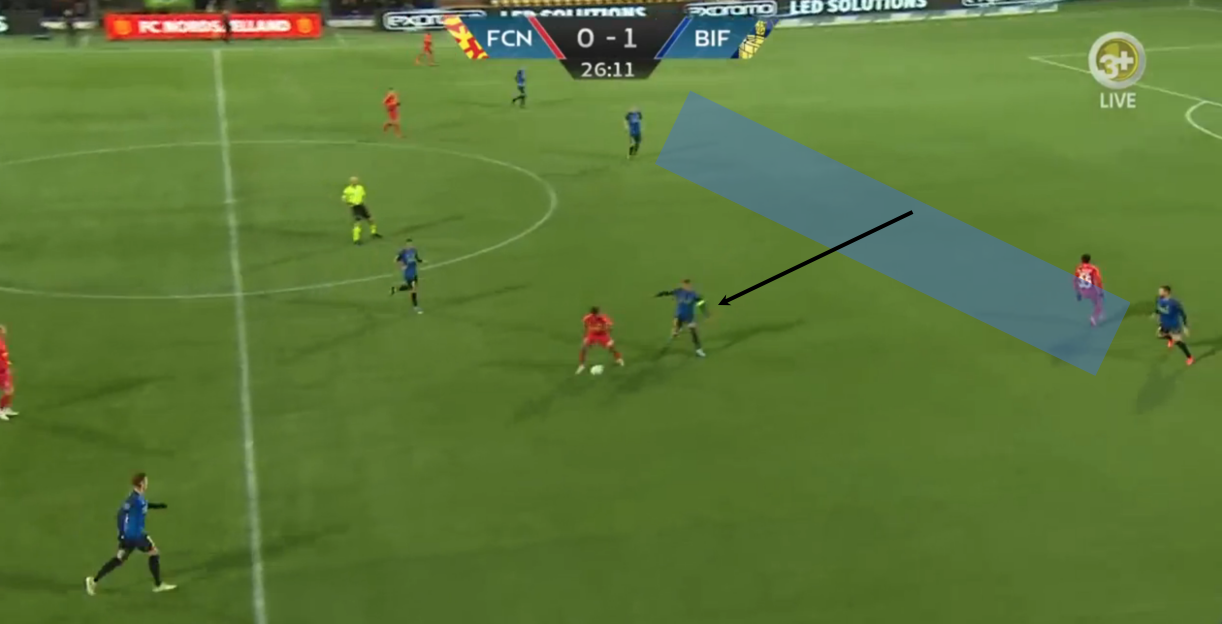 It’s difficult to see where his future lies. He is only 19 and could develop into a dangerous striker, continue as a false 9 or play as a second striker in a front two. But he could also play as a 10 in the long term or be converted into a ball carrying 8 or a right inside forward. He’s versatile and will hopefully develop into a very effective player. He has a high ceiling and I’m excited to see where he ends up. He needs more time to develop in a league like Denmark, Belgium, Holland or the Championship. A jump to the Premier League now would be a lot, he might struggle with the intensity and wouldn’t be afforded the amount of space he enjoys so much in Denmark. But he could be a good buy for a a good team who let him go out on loan to develop further.