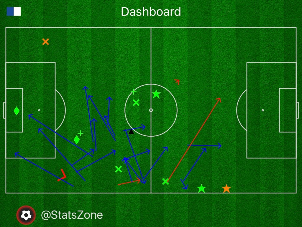 Defensively he was rash, trying to challenge for the ball with poor technique, committing several fouls in dangerous areas and lacked quality. He pressed well a few times but was largely bypassed easily and not effective enough. He didn’t offer himself to teammates in possession enough either and didn’t get that much of the ball before being subbed off in the 74th minute.