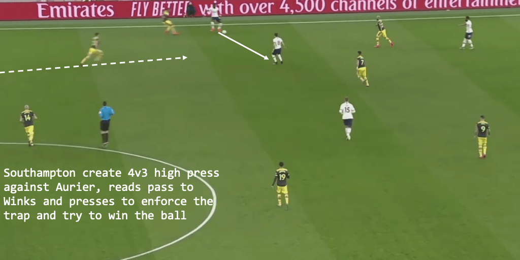 Højbjerg isn’t your traditional ball-winning 6 who screens the back line and doesn’t get forward much, such as Rice, Capoue, Fernandinho, Ndidi, Matic, etc. He steps forward a lot more and likes to press out. At Southampton he’s largely played in a midfield two, often with Ward-Prowse or Romeu. In the midblock, he is vocal and a good leader in midfield. He organises his side and shows himself as an intelligent player. I believe this is a very important factor for Spurs as Winks and Sissoko can look very disjointed at times and have to be organised by Lloris and Alderweireld constantly, lacking leadership in the middle.