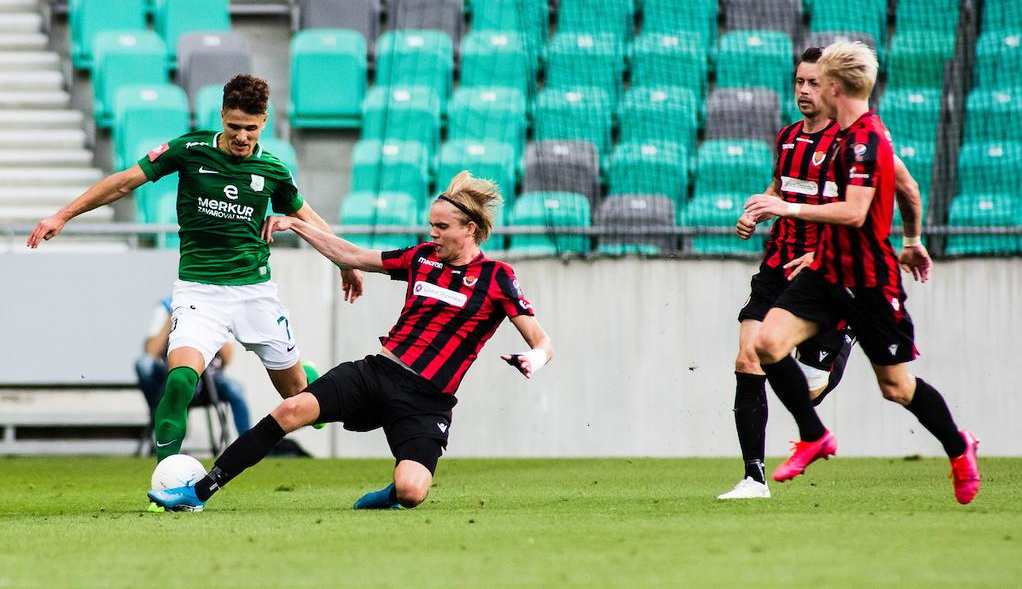 Karlsson scored the first goal of the match for his team. After Agnarsson tried a long shot Óttar Magnús Karlsson was alert for the rebound and scored from quite a tight angle. The striker got another chance in the 46th minute when he almost scored a beautiful goal with his left foot. Karlsson controlled a cross that was just behind him and took a shot with his back turned to the goal, forcing a great save from Olimpija’s goalkeeper.