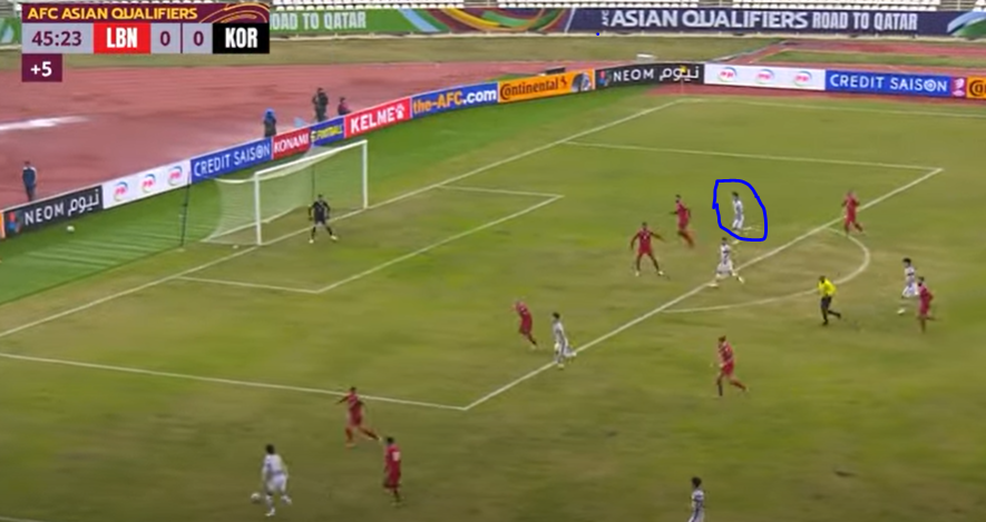 Fairly new to the international scene Cho Gue-sung was called upon to step in for the injured Son Heung-min and fulfil the role as number 9 in a 4-4-2 against Lebanon. Cho played the role of the target man predator by delivering the only goal of the game with his only effort of the game. At other times he was involved in hold up play, doing particularly well in winning fouls in the game, especially in the closing moments of the game with the score 1-0. Sometimes, however, he was perhaps fortunate to win a foul or gave away possession after some slack control, though he does have the excuse of the pitch. He did win the majority of his aerial duels and was the primarily target for teammates for long balls; making good use of his height and strength to help his side maintain their stronghold of possession while moving the ball vertically up the pitch.