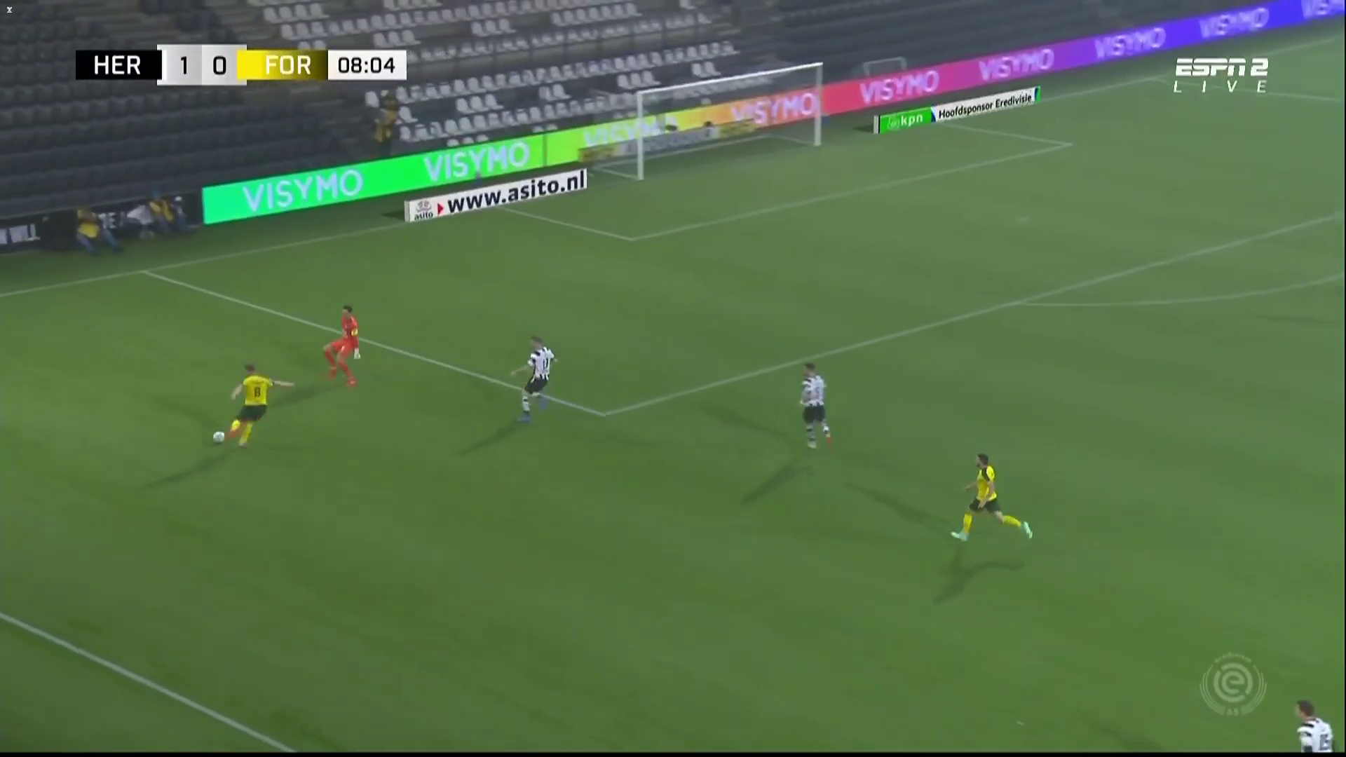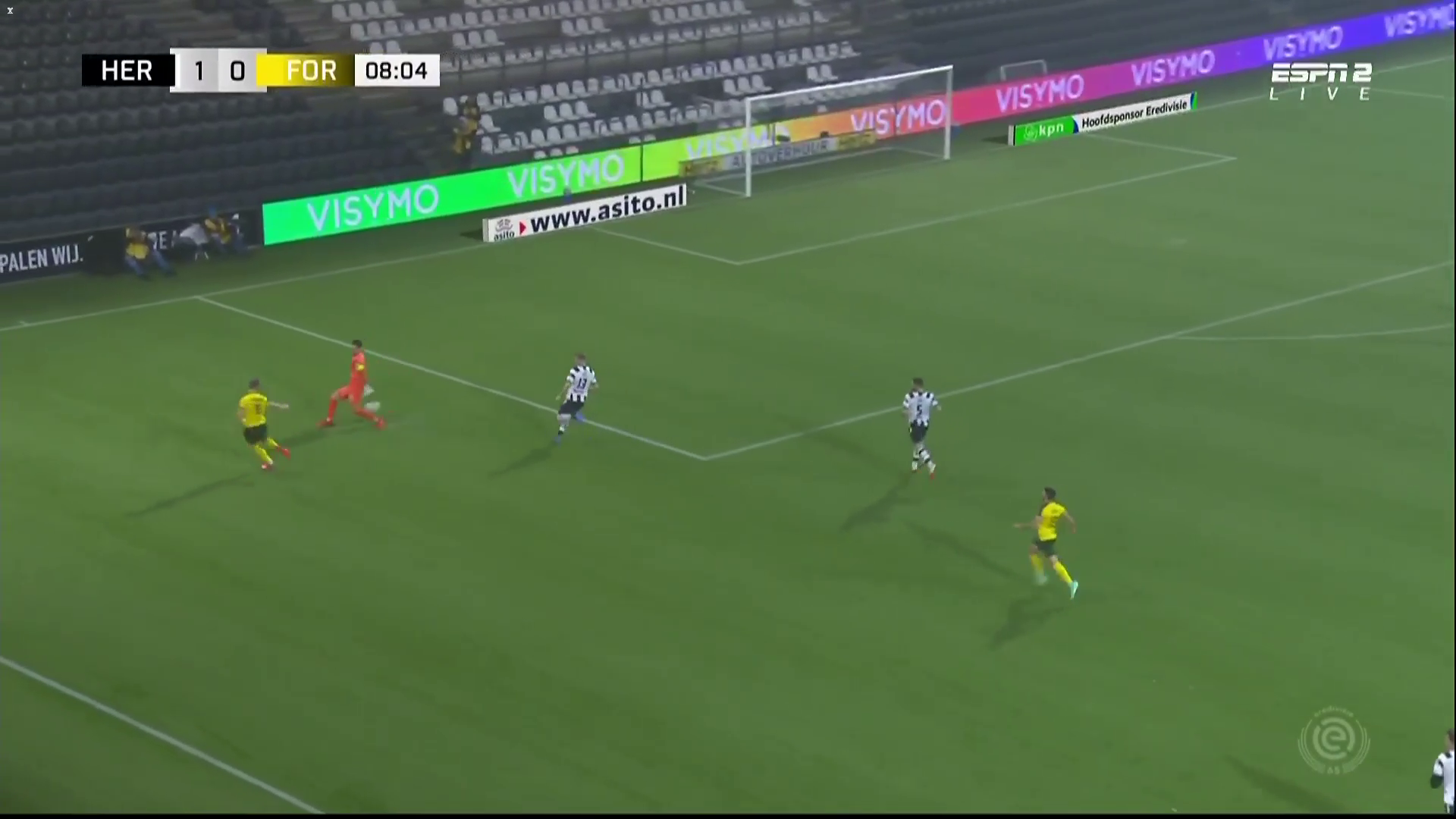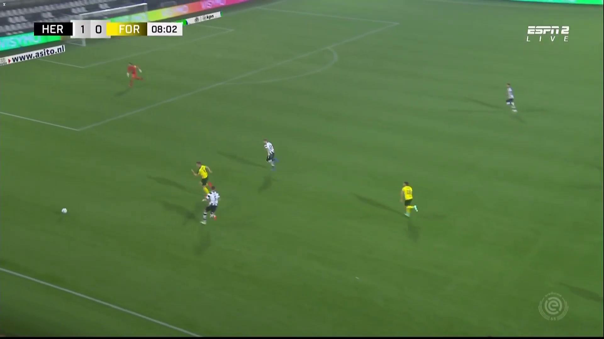 In fast transitions, when Fortuna has the ball on the wings, he often arrives exactly in time around the edge of the box where he usually has quite some space to take a shot. A perfect example of this is his goal in the final match of the season against N.E.C, where striker Gladon gets the ball in the box and then drops it back to Flemming who slots it home with his left foot.