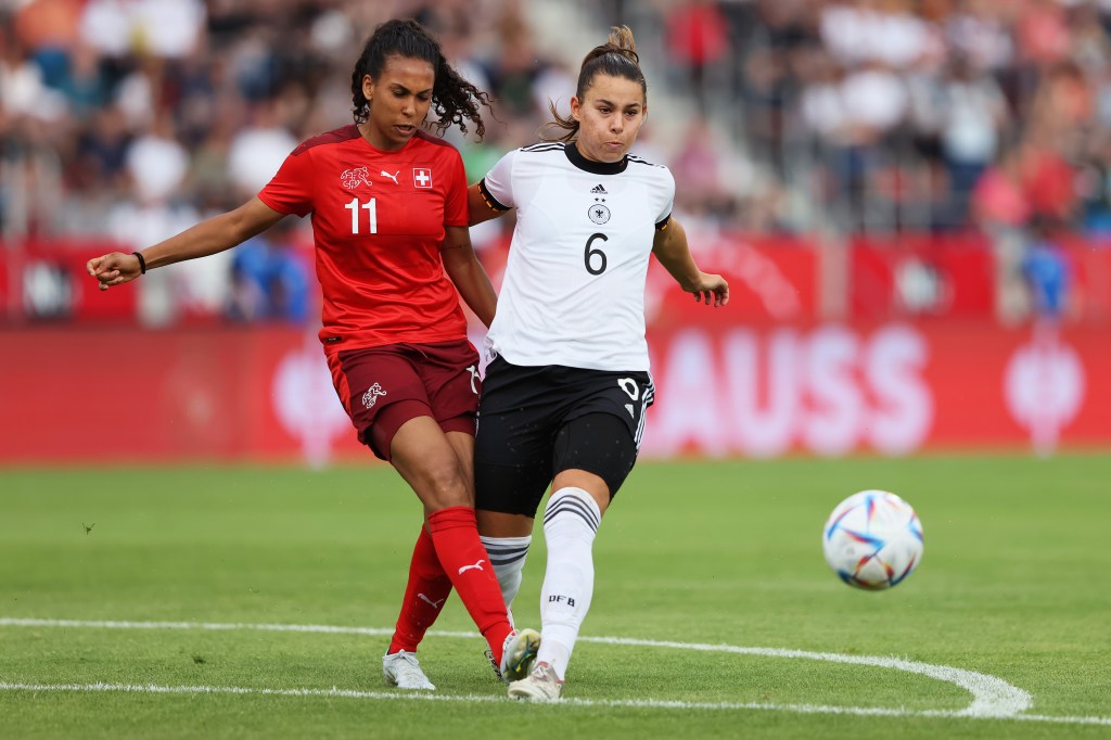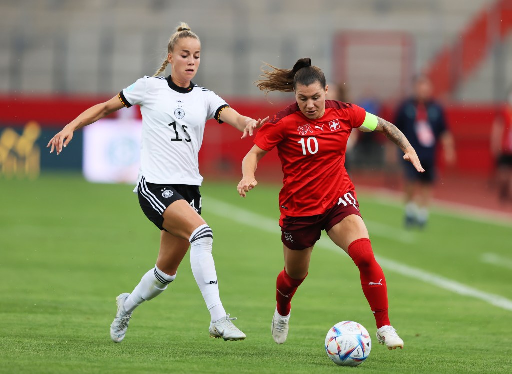 Germany played in a 4-2-3-1 and Klara Bühl played a left wide midfielder or left winger. She has a great game with three goals against Switzerland.