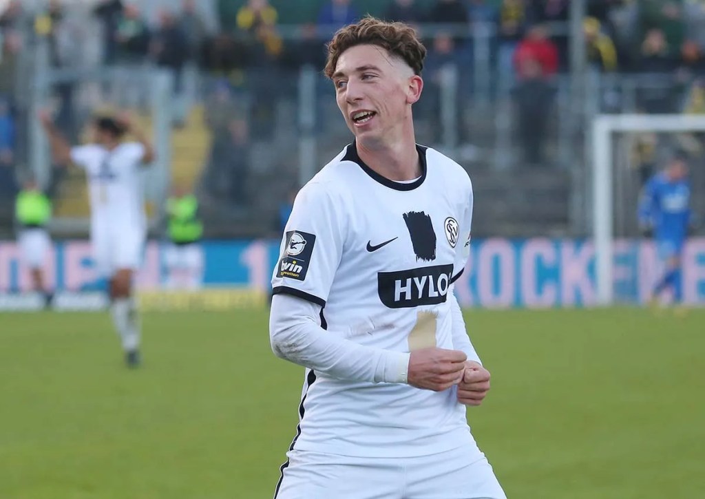Jannik Rochelt is a 182 cm tall (above average height for position) left winger with a mature build who played 88 minutes in this match before being subbed off. He displayed average pace and above average agility against Dortmund. The German winger is tied for second in goals and first in assists in 3. Liga in a breakout campaign, and he added to both totals here.