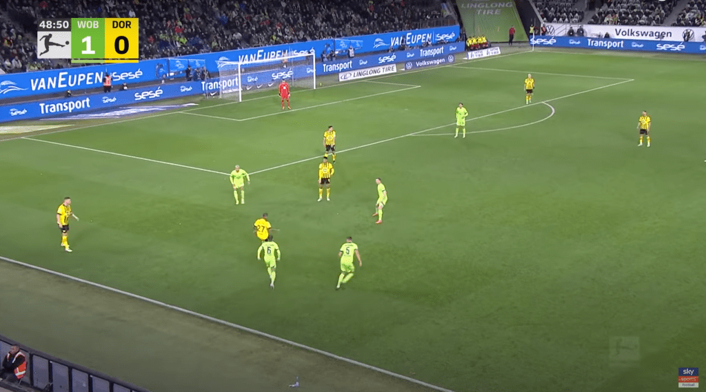 Micky Van de Ven has been a name on my radar for a long while now since his early days at Volendam. Anyone familiar with the dutchman will know of his unique playstyle which I will delve into shortly. Micky Van de Ven joined Wolfsburg after an impressive season in the Eerste Divisie in which he was named best talent of the year for the 2020/21 season and captained the club at only 20 years old. The summer acquisition played a minuscule role last season- featuring for only 189 minutes across the possible 3060 Bundesliga minutes yet this season has been an absolute breakthrough this season. This season, he has played every minute of the Bundesliga season; indicative of not only his talent and proficiency but also his fitness and youthfulness. At the age of only 21, ‘locking down’ a starting role in the back line of a prestigious Bundesliga club is no mean feat. Without further ado, I will get onto the analysis of his performance vs Borussia Dortmund.