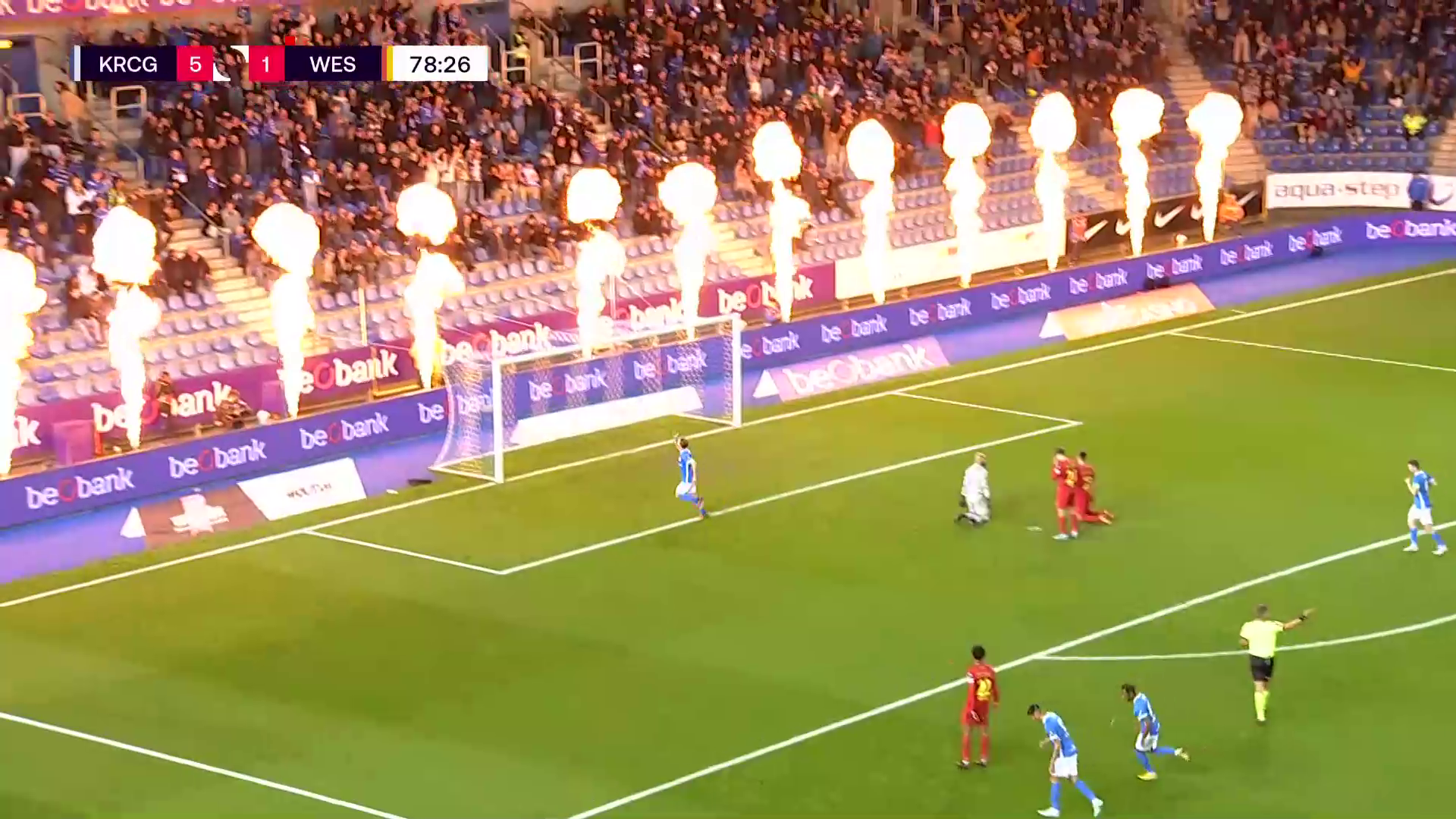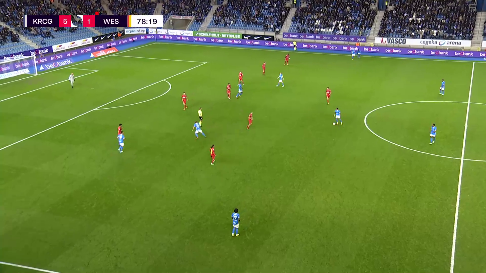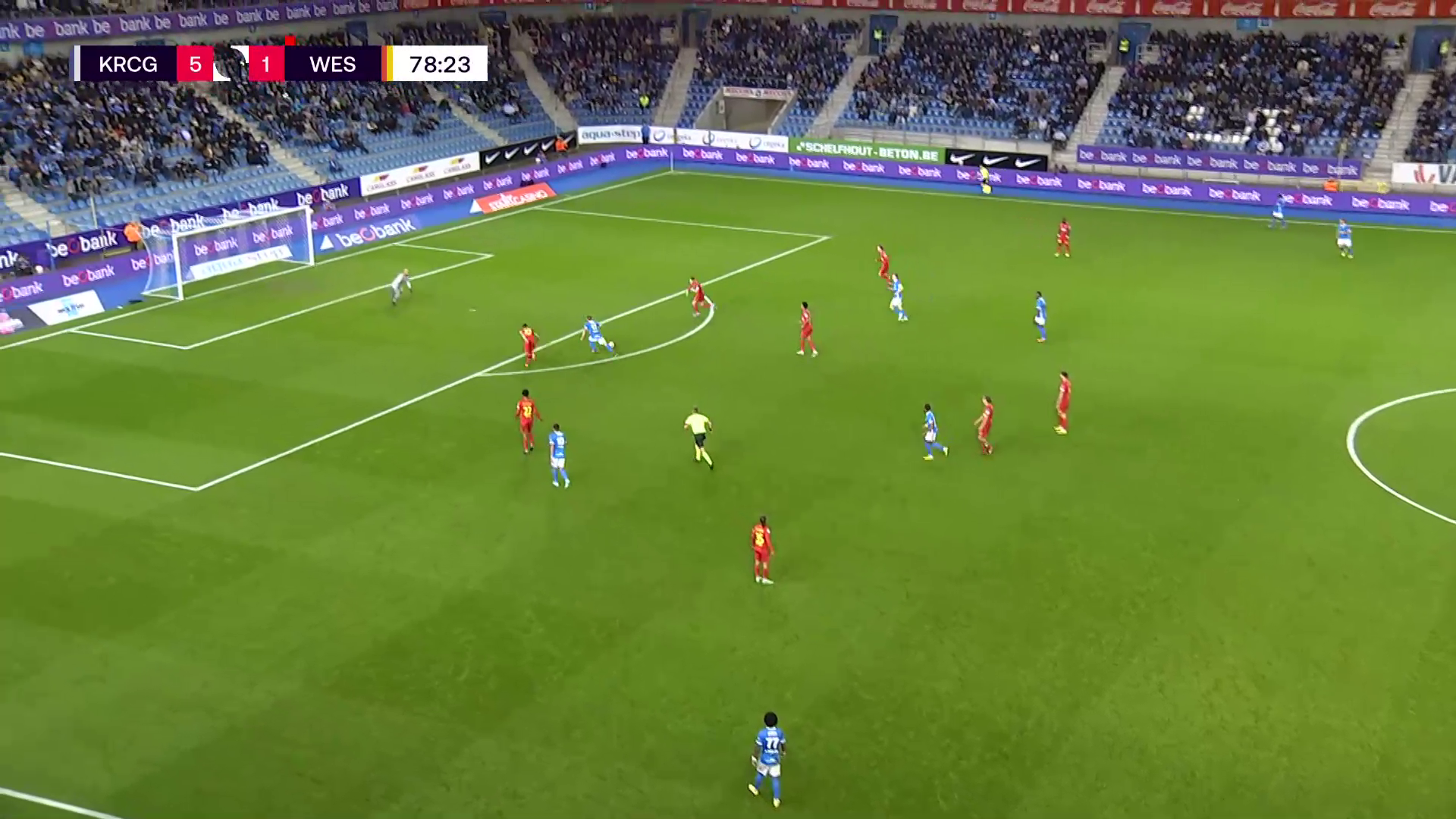 Mike Trésor is mainly a very good creator, which is what his stats also show. His set-pieces are a real weapon for Genk as he already got four assists from indirect free-kicks and three assists from corners. He puts his corners in with quite a lot of power at a great height, so his teammates don’t have to generate a lot of power with their headers and he curves his free-kicks very well. Now we also have to note the absolute giant Paul Onuachu, standing at 2.01m, is the ideal teammate to have in such situations.