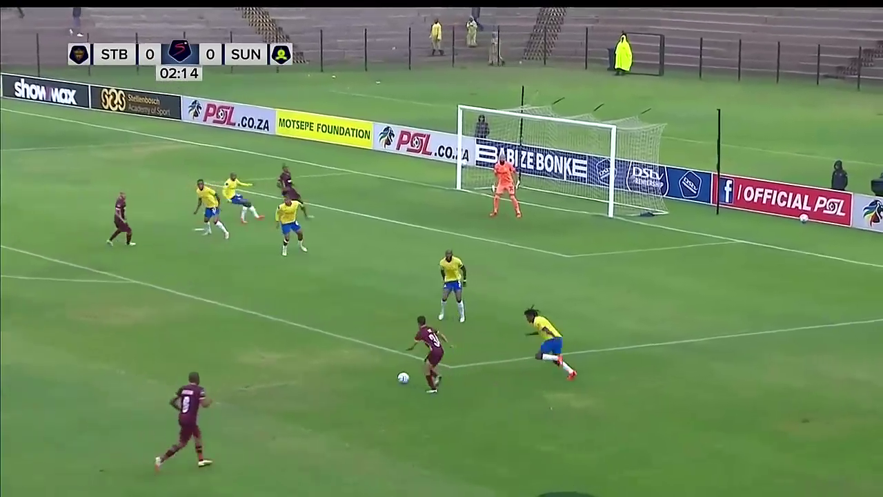 With the ball at his feet, Makhanya didn’t do anything too crazy. He played it quite safe throughout this match and a lot of the build-up was lead by Stellenbosch FC’s goalkeeper Stephens, who really has a fantastic passing range. Makhanya showed that he is able to play a pinpoint switch, but his longer passes were still a little inconsistent.