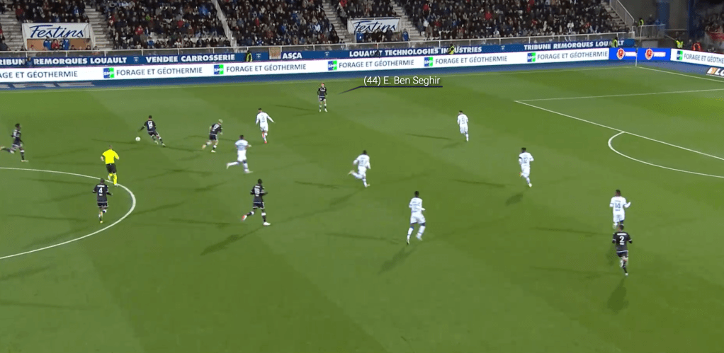 The French starlet has lined up in various positions in the Monaco attack, he has started in a front two alongside Ben Yedder, in this case Ben Seghir will often be the deeper lying forward who has licence to roam and will often drift out to the wide areas or act as a number 10 where he will operate in zone 14 and look act as the link between the midfield and Ben Yedder. He has also lined up as a number 10 which is probably his most natural position hence why he generally gravitates there. Additionally, he has been deployed as a left winger, even when playing in the ‘10’ role, he drifts out to the left wing in particular so is relatively comfortable when playing out wide, although there are some issues with his defensive output when playing as a winger, but he is a young player and this is something that can be remedied on the training ground should Monaco view his long term position to be out wide.