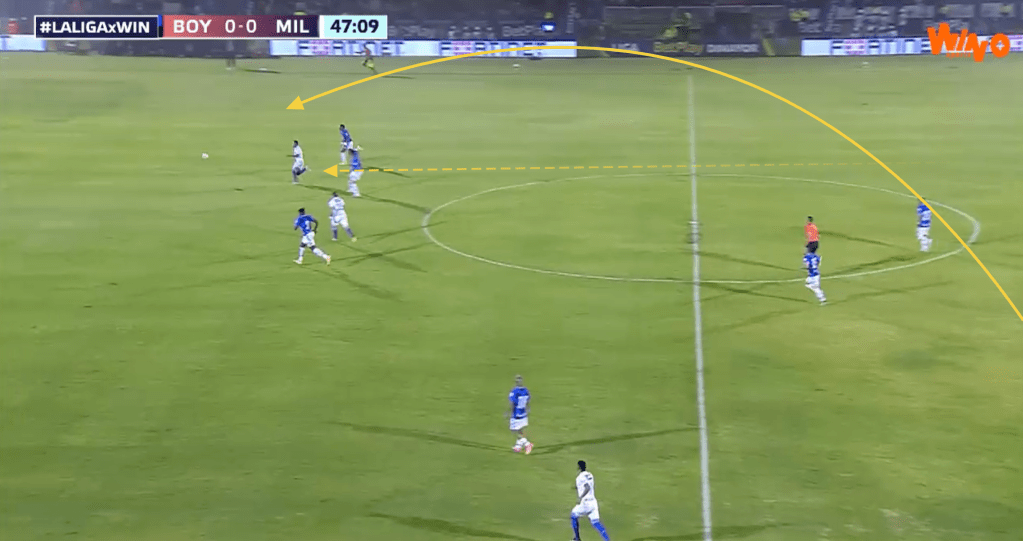 Cortés frequently displays how his intelligent and dynamic movements when both in and out of possession often lead to goal scoring opportunities being created. He is able to anticipate when and where his teammates will play the ball, through well-timed runs down the wing or into the half spaces, he finds himself in advantageous positions which is beneficial to the team. Additionally, his dynamic movements without the ball contribute to the overall team strategy. His ability to constantly move into space forces the opposition’s defence to adjust and reposition themselves, thereby creating openings for his teammates in other areas of the pitch. This stretches the defence horizontally, creating gaps that can be exploited by midfielders, strikers, or overlapping full-backs. Consequently, the team’s attacking options increase, leading to a more versatile and unpredictable structure in the attacking phase.
